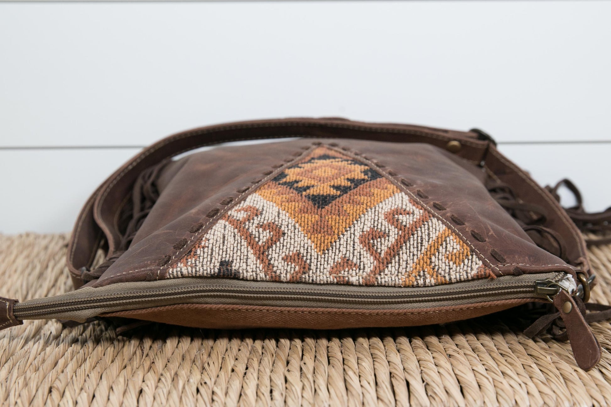 Western Leather Handbag with suede fringe. Made with gorgeous brown leather and includes matching, adjustable strap. Fully lined interior.